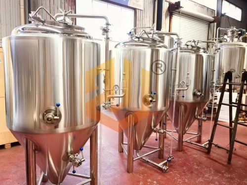 精(jīng)釀啤酒設備發酵罐:啤酒發酵罐可配置200升或者(zhě)400升啤酒發酵罐,整體(tǐ)設計采用頂部人孔設計思路,采用水封機械式排氣(qì)閥設計,可自由設定壓力排出,自動排壓;溫度采用夾套降溫的方式,單罐單控,發酵溫(wēn)度可自由設定溫度,自動(dòng)控製;保(bǎo)溫采用80MM的保溫層;發酵罐(guàn)配有液位裝置,可以觀察內部(bù)液位;工作壓力2bar,成品產品保壓3bar72小時以上。